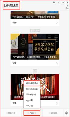 扫描下方二维码,关注【北京畅想之星】公众号,从【产品中心】-【畅想之星电子书】进入微信端首页。